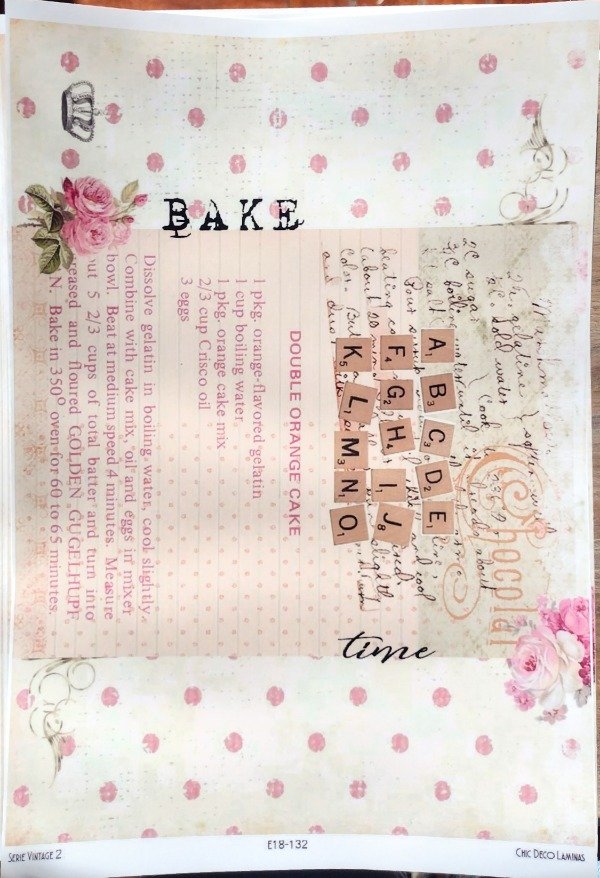Lamina de papel autoadhesivo a4, tamaño 32x23cm. Linea Cocina Vintage