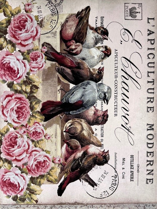 Lamina de papel autoadhesivo tamaño 32x23cm. Linea Serie Vintage Pájaros