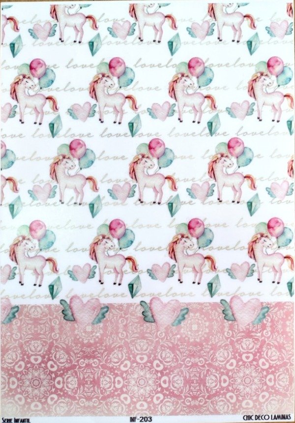 Lámina DECOUPAGE INF-203 INFANTIL -UNICORNIO