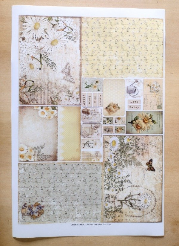 Lamina de papel decoupage XL, tamaño 47x32cm. Linea Flores 2022