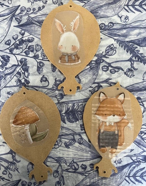 Globito mdf 12cm x 7cm aprox, con recortes de TC.