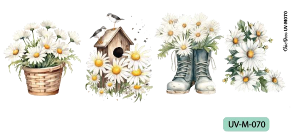 No requiere ni calor ni adhesivos para su colocación, solo las posicionas como un vinilo , haces presión sobre la estampa con una cuchara, espátula o tarjeta, retiras el film y … listo!!!